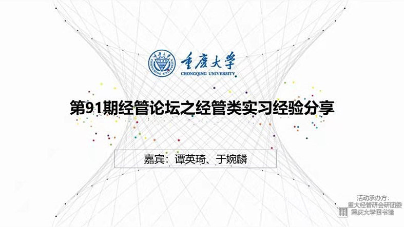 2021年5月19日晚17时,由经济与工商管理学院研会研团委主办的第91期经管论坛之经管类实习经验分享在腾讯会议线上平台顺利举行。本次活动邀请到2019级工商管理专业硕士研究生谭英琦同学和2019级工商管理专业硕士研究生于婉麟同学就自身在实习过程中积累的经验和遇到的问题进行分享,学院各专业 60余名同学参加了本次活动。