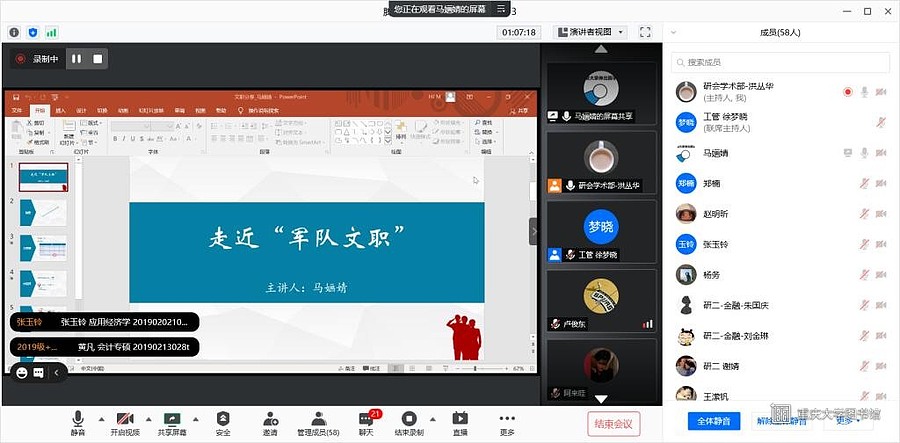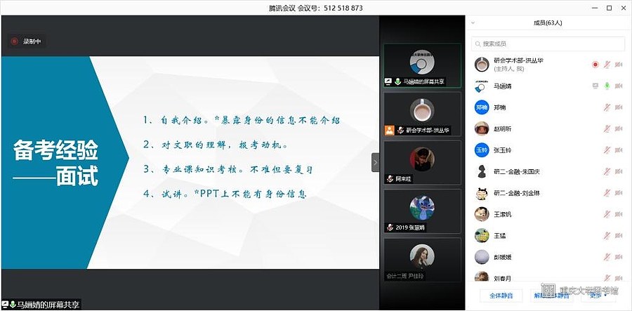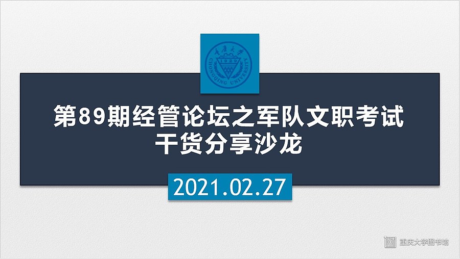 2021年2月27日下午3时,第89期经管论坛之军队文职考试干货分享沙龙通过腾讯会议以线上分享的形式顺利举行。本次活动由经济与工商管理学院研会研团委主办,旨在帮助同学们了解军队文职考试的基本情况,以便于更好地进行相关的准备工作。