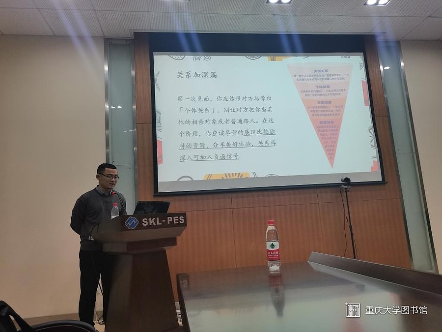 为进一步引导学生缓解单身焦虑,保持健康的心理状态并且树立正确、健康的恋爱观,12月10日15:00,电气工程学院邀请了心理健康教育专家刘方健于会议室6119展开了以“恋爱那些小事”为主题的学生恋爱心理健康教育讲座。其中,辅导员杨春花出席讲座,并总结了主题讲座的学习意义。