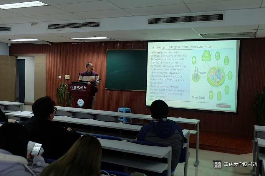 2019年12月24日上午10:30分,在重庆大学A区主教学楼计算机学院1811会议室,我院有幸邀请到美国德州农工大学卡塔尔分校黄廷文教授作了题为“智能电网中的优化问题”的学术报告。本场学术报告由向涛副院长主持。计算机学院研究相关领域的研究生以及老师出席了本次学术报告。