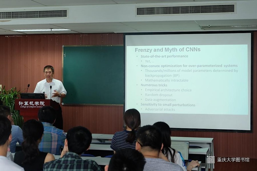 2019年6月13日上午10:00,A区主教学楼1811热情洋溢,学术氛围浓厚,C.-C.Jay Kuo教授来到重庆大学做关于卷积神经网络的学术报告。本次学术报告由计算机学院郭松涛副院长主持,各届硕士研究生,博士积极参与了这次学术报告。