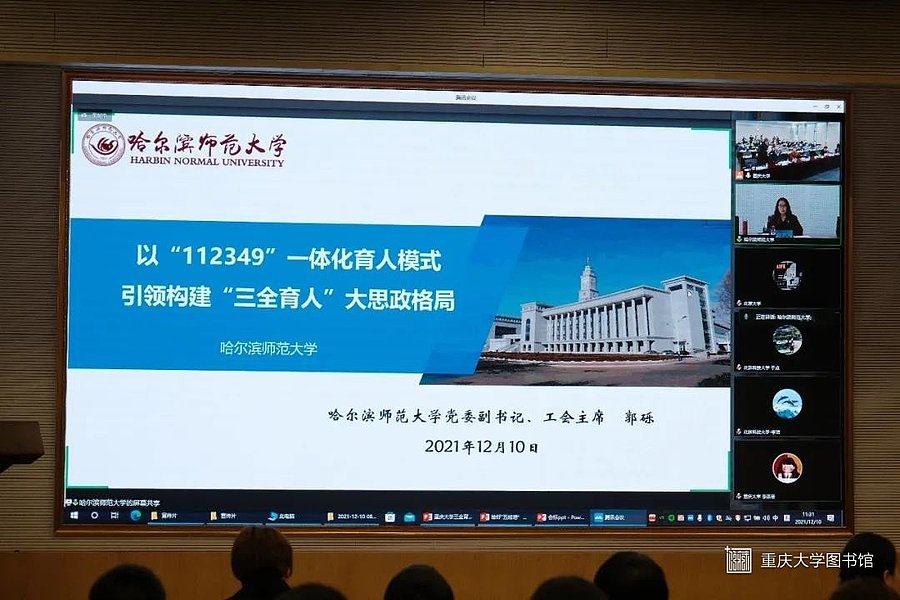 教育部思想政治工作司副司长张文斌通过线上致辞,他表示,在全党上下深入学习贯彻党的十九届六中全会精神之际,重庆大学组织召开的这次研讨会,既是总结经验,交流做法,更是进一步推动“三全育人”综合改革往深里走、往实里走的重要举措。张文斌强调,参会高校要继续深化推进“三全育人”,加快落实立德树人根本任务,全面提升育人成效,要进一步深化理论武装,加强思想引领,总结试点成果,完善落实机制,培育时代新人。